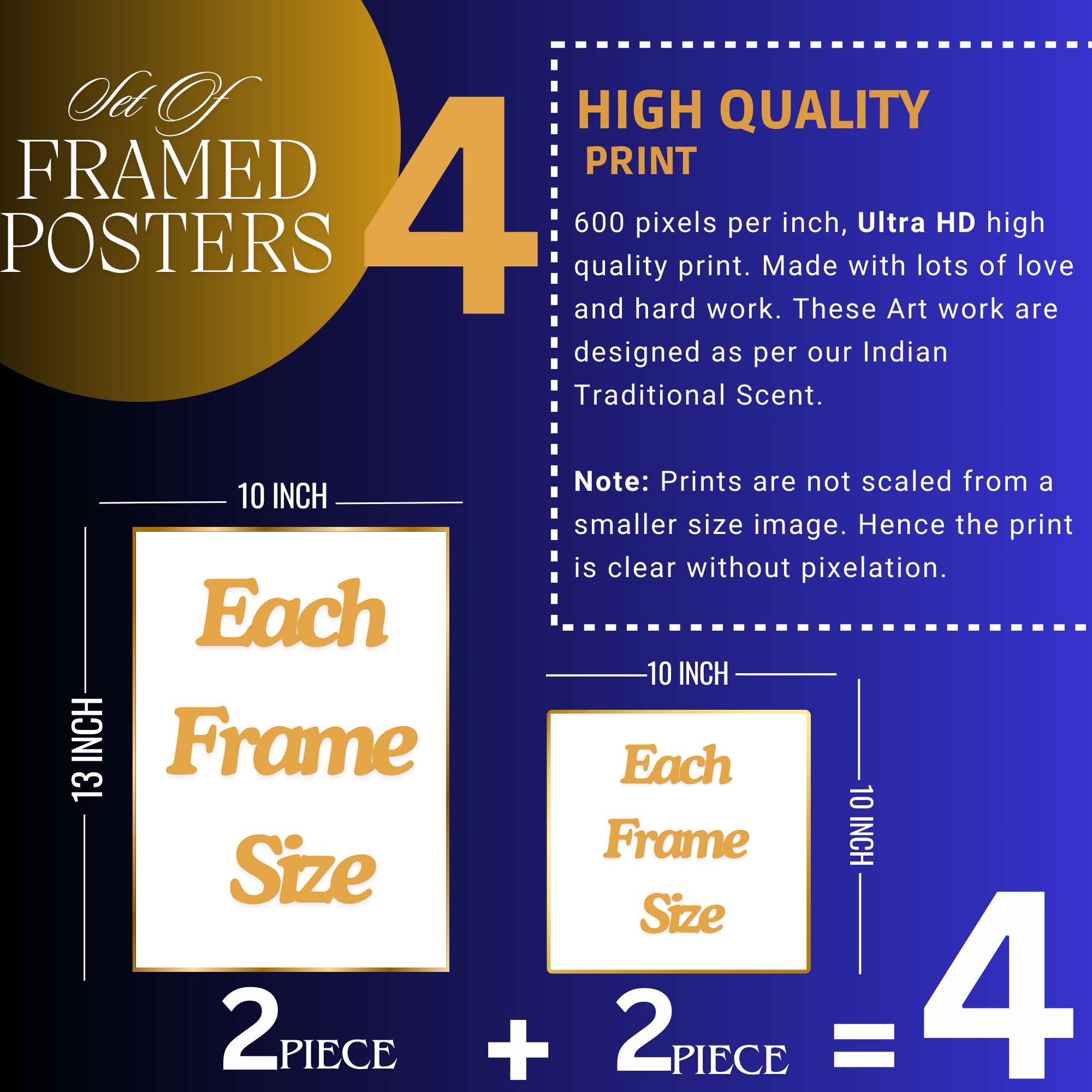 Set of Four Wall Paintings for Wall Dacoration Golden Framed Wall Paintings for Living Room & Bedroom Wall Art for Home Decoration & Office Wall Décor (13×10 inch CH-GD4-1)